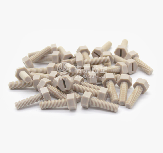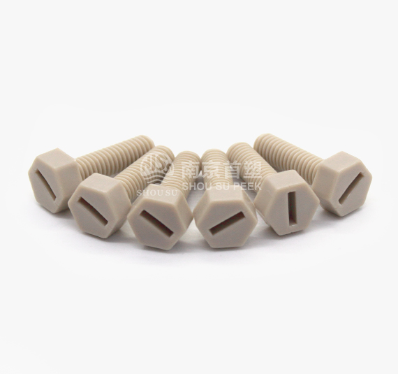 PEEK bolts can be formed in one time by mans of injection technology, in which the processing cost is low, and the price is superior. It is more corrosion resistant than metal screws, and featured with non-rusty property, light weight, high temperature resistant, excellent electrical performance, and irradiation resistance. Large inventory available all year round. Nanjing Shousu produces PEEK screws of the following specifications:
