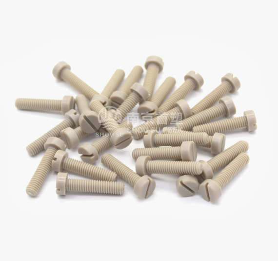 PEEK bolts can be formed in one time by mans of injection technology, in which the processing cost is low, and the price is superior. It is more corrosion resistant than metal screws, and featured with non-rusty property, light weight, high temperature resistant, excellent electrical performance, and irradiation resistance. Large inventory available all year round. Nanjing Shousu produces PEEK screws of the following specifications: