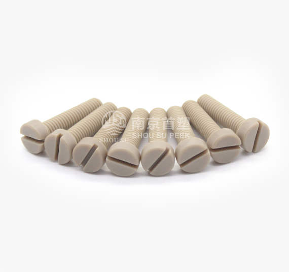 PEEK bolts can be formed in one time by mans of injection technology, in which the processing cost is low, and the price is superior. It is more corrosion resistant than metal screws, and featured with non-rusty property, light weight, high temperature resistant, excellent electrical performance, and irradiation resistance. Large inventory available all year round. Nanjing Shousu produces PEEK screws of the following specifications:
